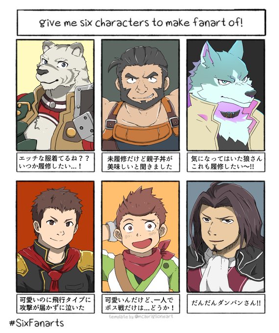 今回はこの6キャラにしました! 色んなキャラに挑戦できて楽しかったです。 そして、キャラ名の代わりに余計なひと言を添えました。