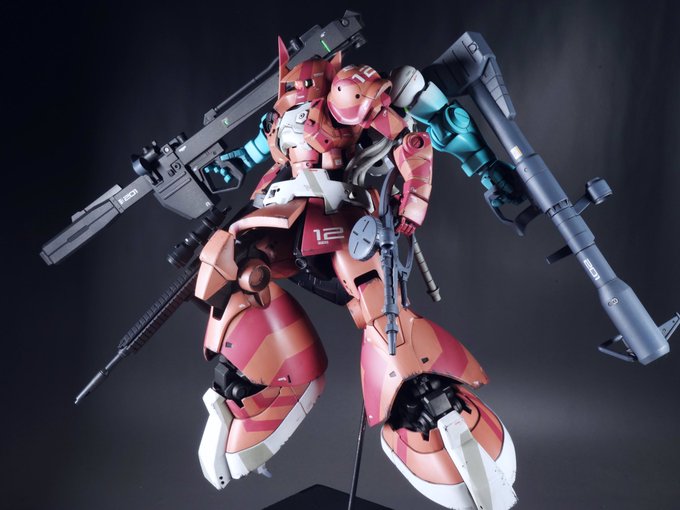 シャア専用高機動型ザクI最終決戦バージョンです。ガンダムとの最終決戦。ララァの練習機、サイコミュ試験型高機動ザクを改装したif機体です^_^ #ツイッターで楽しむジオン軍