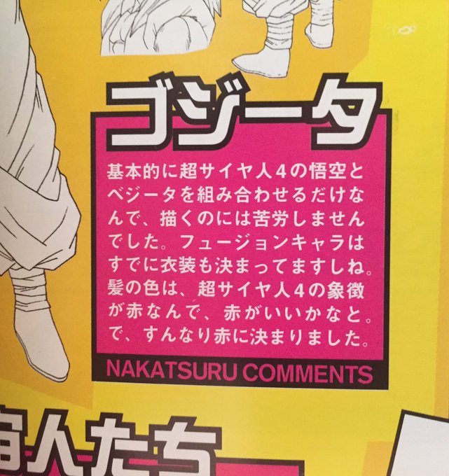 ゴジータ4の髪型は…あのゆるいMハゲと垂らした一房の前髪をそのままに、それが超4になって後ろ髪を伸ばしたようなやつがよかったな。なんならベジータ4の生え際を少し下げて前髪足すだけでもよかったよ。