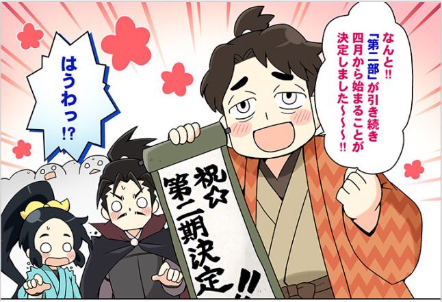 アニメ『信長の忍び』二期決定しました!しかもなんと間を空けず4月から続けます☆『信長の忍び〜伊勢・金ヶ崎篇〜』として松永久秀、北畠具教、真柄直隆、山崎吉家らが登場です!どうぞご期待ください☆また公式サイトでアフレコレポ漫画第7回公開!https://t.co/Xpa76Jb35I