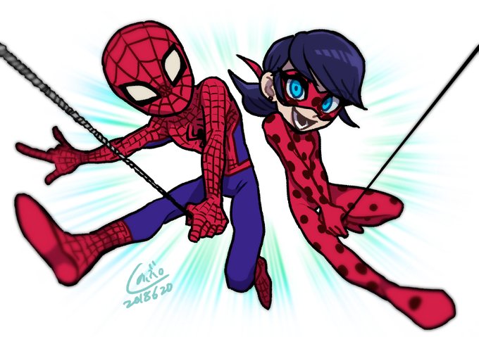 大昔に描いたスパイダーマン×ミラキュラスのクロスオーバーです🕷🐞 このコラボ普通に見たいわ〜