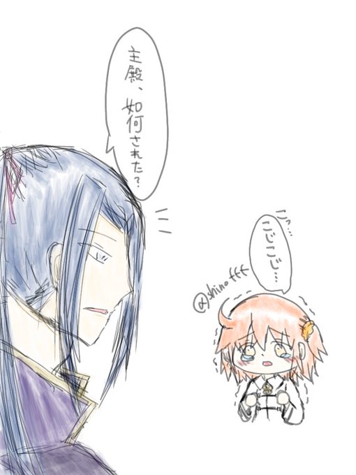 突然の緊急事態発生で泣きそうな状況なのに、なぎこさんの影響で小次郎のことを「こじこじ」と呼んでしまったちびぐだ子と、既に呼び慣れている為全く動揺せず冷静に話を聞こうとする小次郎書描いてみた😊 #イラスト #FGO