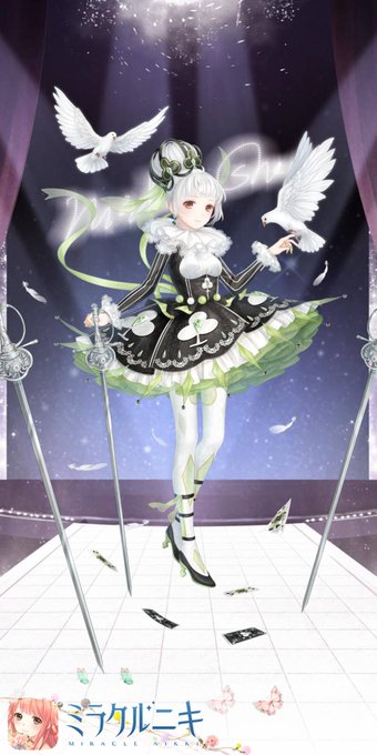 新作ダイヤガチャはチケット10連+10連の20で、コーディアルブーケヒール、ハットが出た。髪の毛可愛いなと、交換所でヘア、スカート、ストア、バスケットを交換。