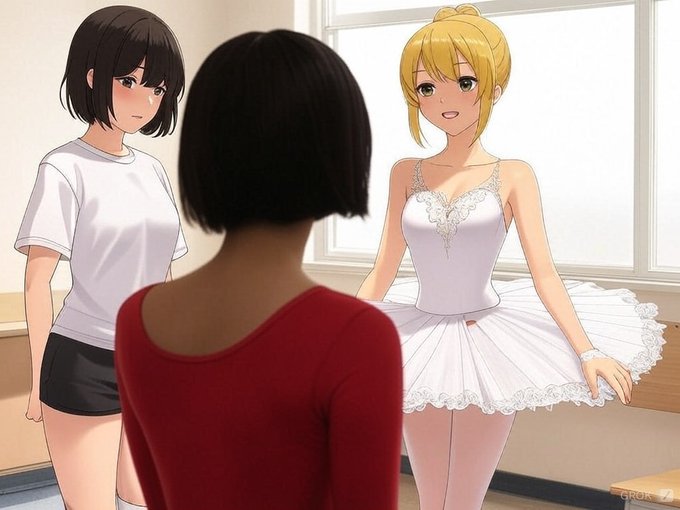 #AI性転換 #AIart #Grok2 #TSF #性転換 バレリーノを目指していた男子高校生が、バレリーナの仲間に無理矢理入れられるシチュ その5 元男子高校生が、女の子になったので、それ用の書類を書くところ 先輩元男子バレリーナくんが分からない所は教えてくれる… https://t.co/qcriKokD8L
