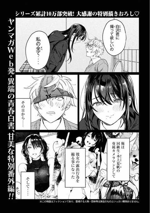Umagome Rakure's 'Hajirau Kimi ga Mitainda' gets a color page and a bonus chapter in this week's issue of WYM to commemorate the release of its 2nd volume earlier this month (October 20). The series runs in @yanmagaweb. #恥じらう君が見たいんだ
