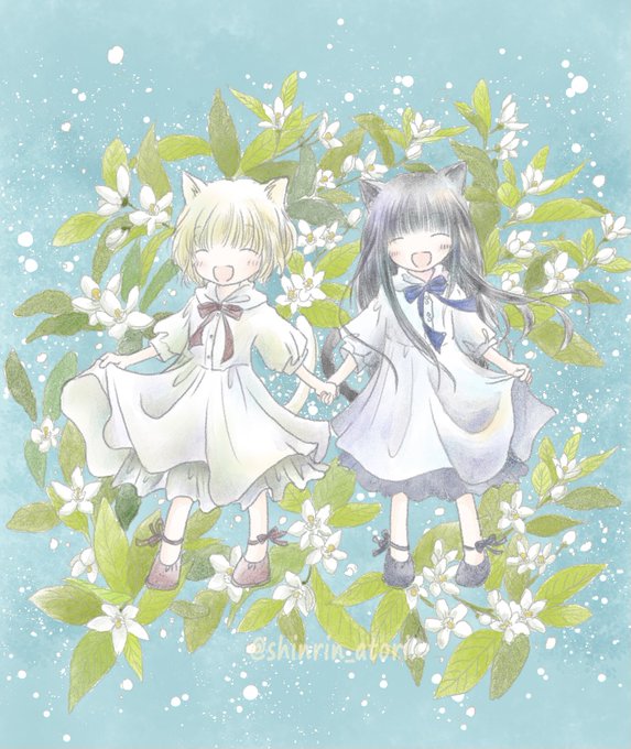 森林ノォトの1冊目の表紙絵。白猫さんと黒猫さん。