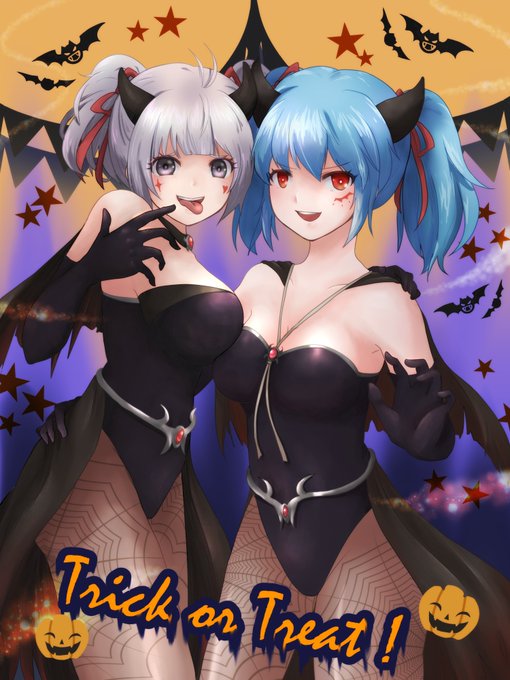 お菓子あげないと洒落にならないイタズラを仕掛けてきそうな二人🦇🎃 #アイサガファンアート #アイサガ #ハロウィンイラスト
