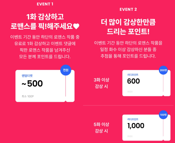 유료로 감상하신분들 추첨을 통해 최대 1000포인트가지 주는 중얼중엏