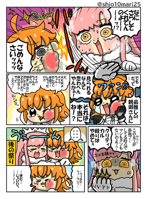 しまどりる先生にファンアート見られちゃった時のマスターとメイヴちゃんと当たり前のように巻き込まれるイアソンくんの漫画。 #FGO
