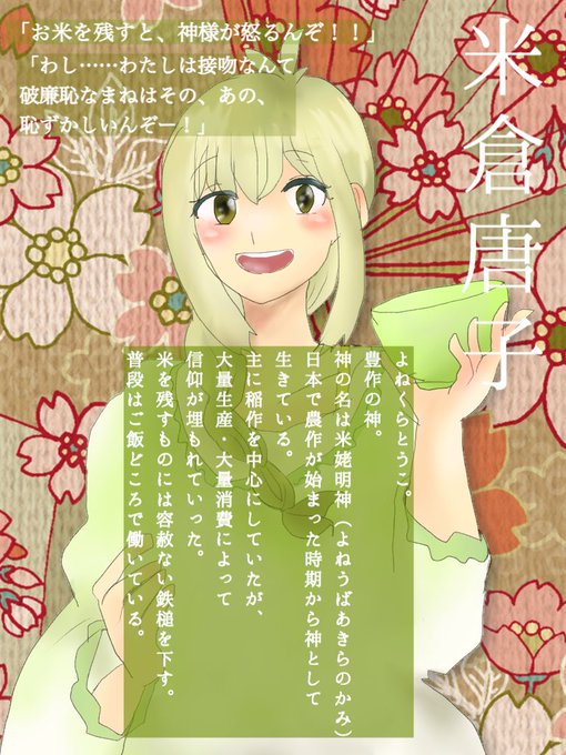 【@8million_kisses】神様三人目失礼します!年の功で朗らかで、飯に厳しい米ババアです!よねくらとうこです!よろしくお願いします!!