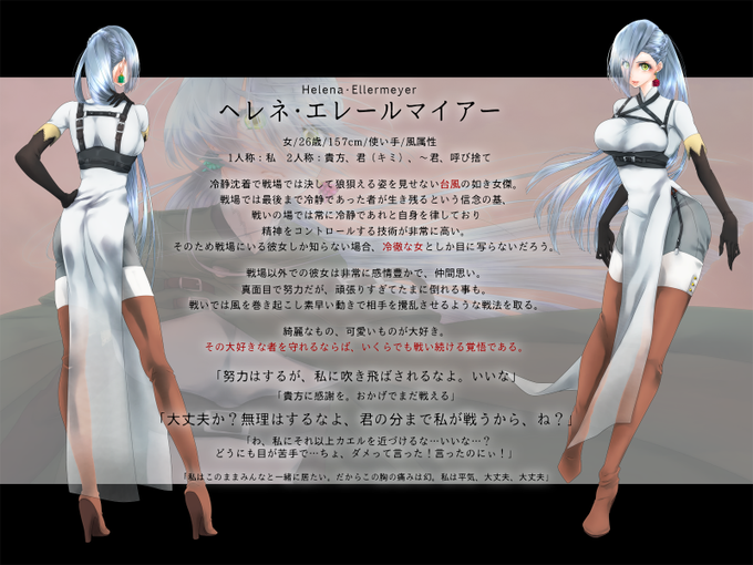 戦闘中は冷静沈着無表情ですが、日常だと普通の前向きな努力家の女性です。