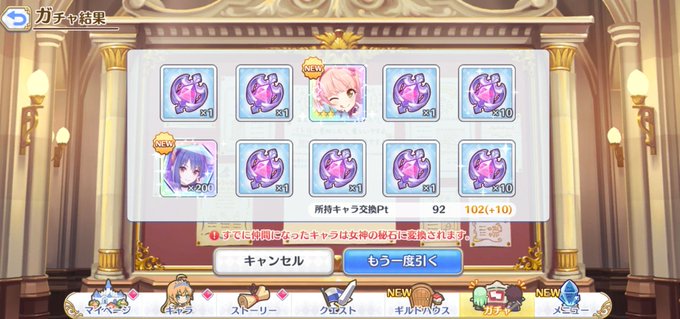 推しを引かない選択肢は存在しないんや。3連続天井は免れたし持ってなかった聖学祭チエル引けたから勝利。