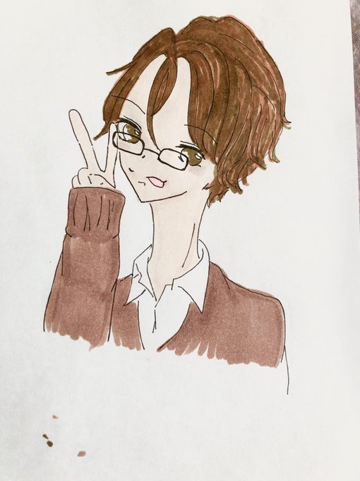 髪塗ったらオレンジすぎて 上から塗り直したものの… すげーハゲっぽい(笑) #絵描きさんと繋がりたい #絵描き初心者 #アナログイラスト #ハゲ