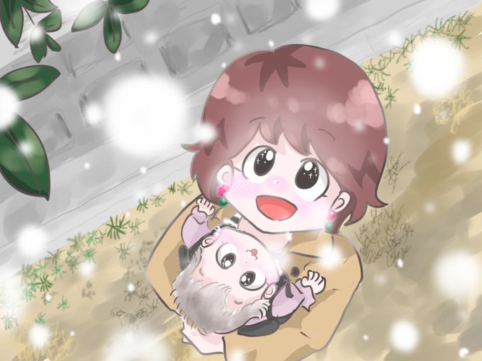 娘と初めて一緒に雪を見た幸せを忘れたくなくて、描きました。 #絵日記 #イラスト
