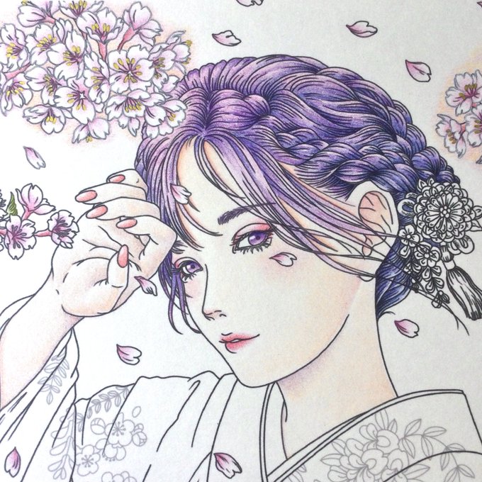 金ペン・白ペンの使い方がいまいち分かってませんが、着物の柄塗るの楽しいです✨ before→after #大人の塗り絵