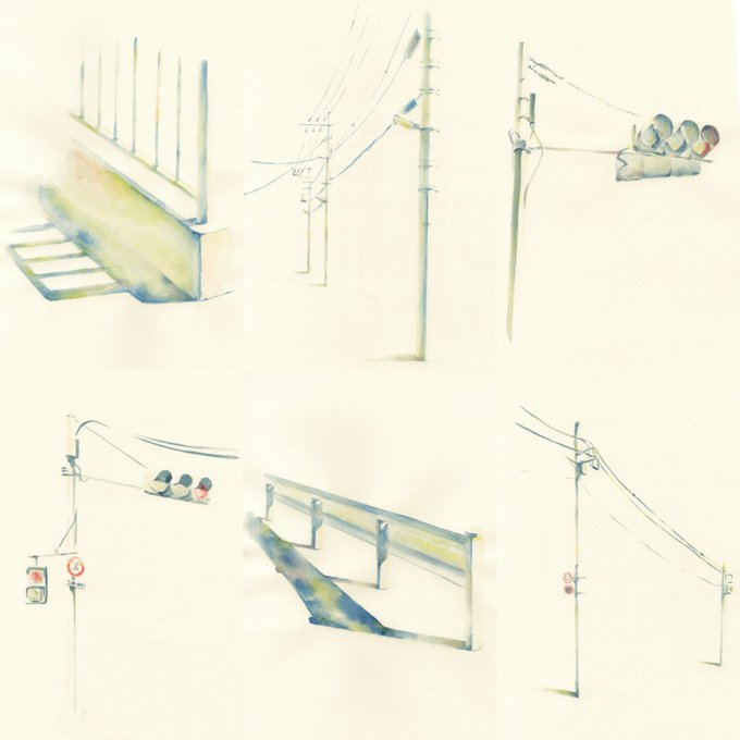 100枚ドローイング(100ドロ) 「光」をテーマに 昼間、道路で強い太陽光に負けず 在り続ける物たちを描きました