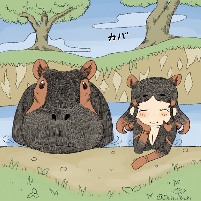 #けものフレンズ #カバ 遅くなった今日(昨日)の一枚。毛むくじゃらの何かにしか見えない…描き方間違えたかなぁ…