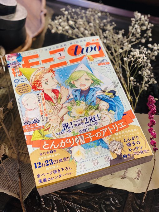 【お知らせ】本日11/21発売のモーニングツーに『 とんがり帽子のアトリエ 』45話が掲載されています。少しずつ顕になる世界の歪み。秘密を抱く魔法使いの在り方に、葛藤を覚える子供達…。新キャラも登場し、物語は新章"銀夜祭編"へ!来月発売のアトリエ8巻(特装版)&キッチン2巻もよろしくね✨#Δ帽子