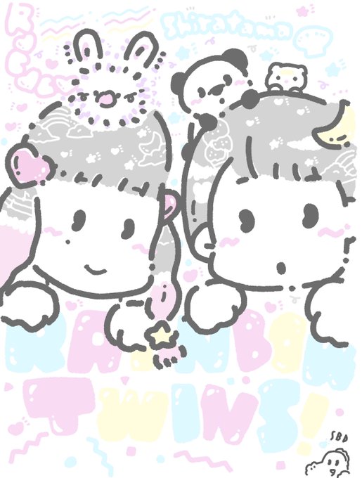 THE STRAWBERRY BUBBLE DINOSAURさんからRainbow Twins rococo & tamakoのイラスト(お共のごますけ、ネコちゃんまで❣️)描いて下さりました本当に嬉しいです宝物です😭💖💕ありがとうございます〜❣️🌈💖🌈⭐️
