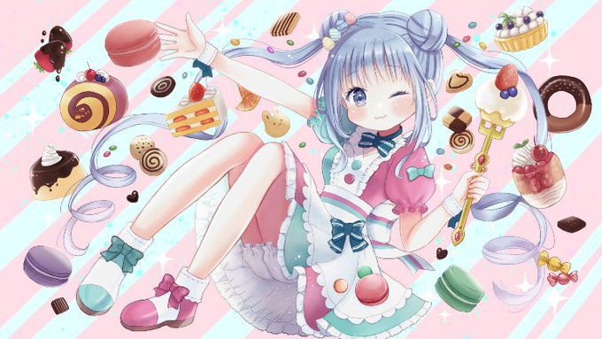 お菓子に囲まれたポップな世界が