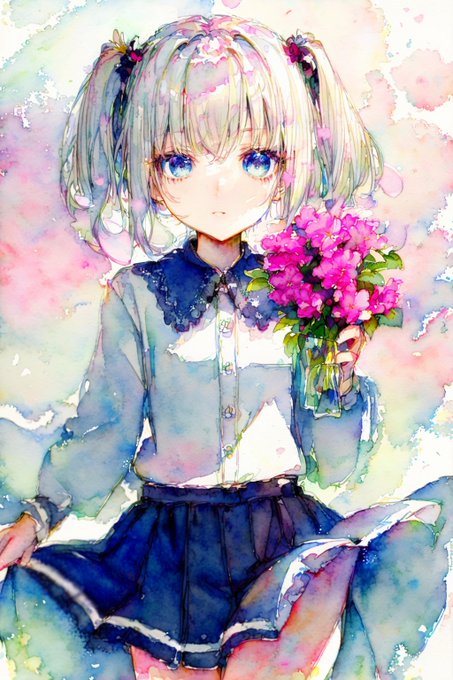 プロンプトはシンプルに"anime girl, waterpaint"で出力