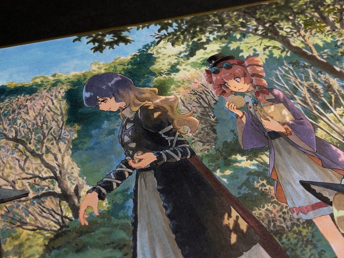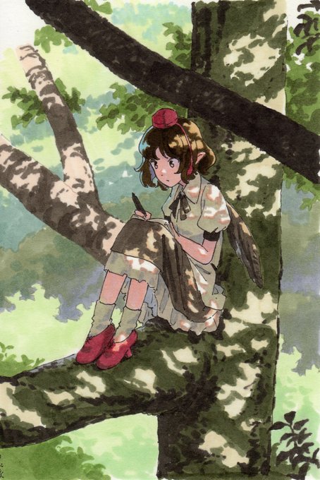 アップ。キャラはシンプルながらも最近は服の皺を結構しっかり描くようになりました。 服の色も単調にせずに周囲の光を反映させれば風景に馴染むし風景自体の空気感やスケール感も伝わりやすくなると思います。