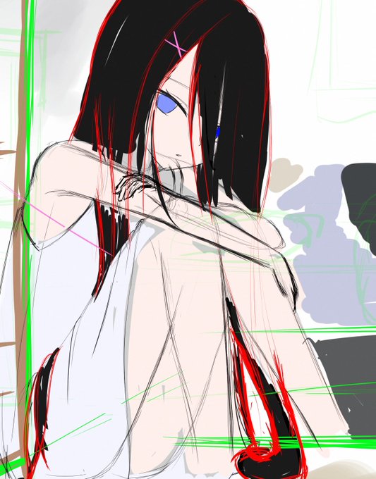 #このタグを見た人はラフ画とその完成絵を見せる 比べてみると綺麗に見える