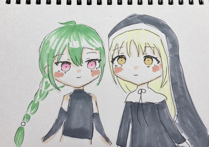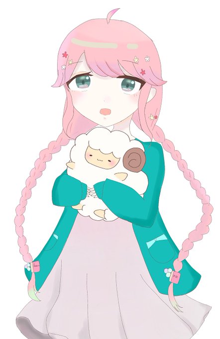 #春野めぇ #架空新人Vtuber ピンクとみどり中心のほわほわした子を描きたかった…🐏 己の実力