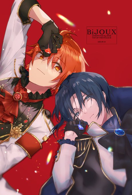 9/18 トプステで頒布する『BiJOUX』のサンプルです~❤️💙 A5・20pのフルカラーイラスト本になっています💎 フラウェ中心に割と他のアイドルの絵も描いてます。 既存絵一枚ありますがそれ以外描き下ろしになっているので何卒!!