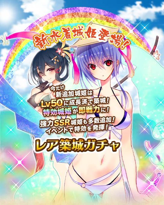 【城姫かわら版】8/1より初登場の城姫『岩国城』や水着城姫を含め、総勢11城が築城ガチャに追加! 本日8/3まで限定で新追加城姫はLv50で獲得できるキャンペーンも実施中です #城姫 http://t.co/9YyoV0nOba