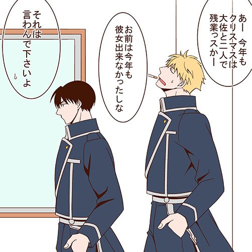 普段が普段なだけに軍部での距離感のおかしさに無自覚なハボロイちゃん