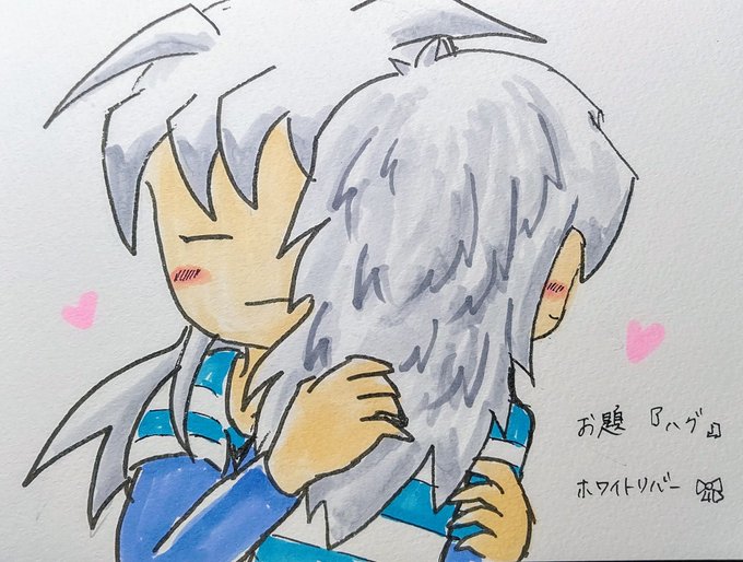 ※CPです #アナログ絵 #コピックイラスト 久しぶりに獏良くんとバクラくん バクラくんの目キラキラさせ過ぎた…w