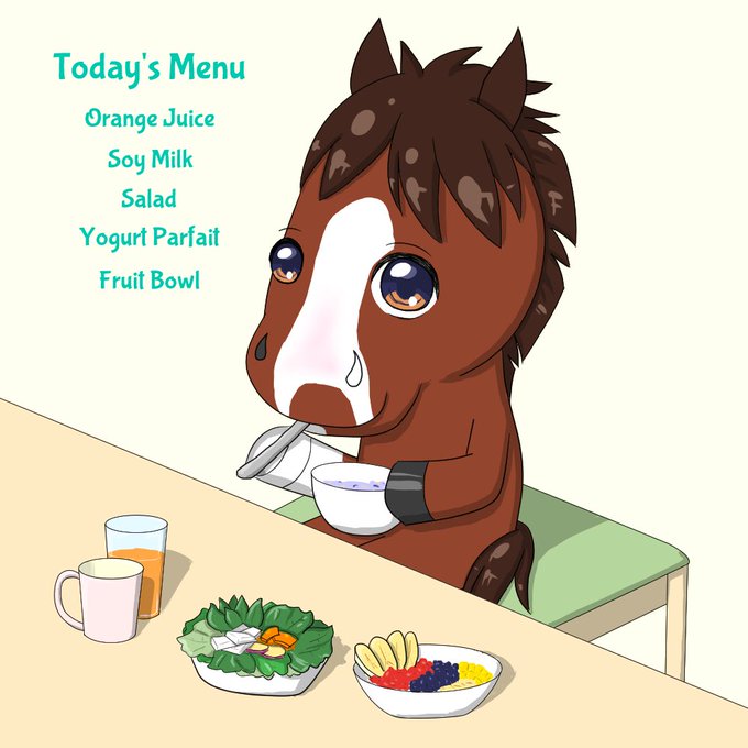 まずは朝食を食べるメロちゃんと、#コントレイル くんとのデートという多方面(オルフェパパとか森田先生とかw)から苦情の来そうな一枚😏