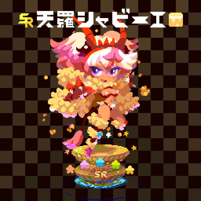 架空ソシャゲのSRキャラ、天羅シャビーエ(属性:脂質 🍤) シャ(車)ビエ(海老)