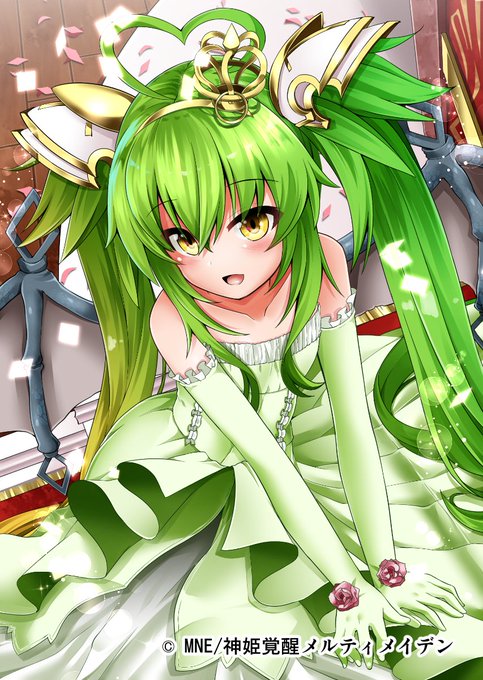 マイネット様の神姫覚醒メルティメイデンで[竜婚]ユエルを描かせていただきました 振り返ってみたらこのメインの髪留め?付けるのが去年のハロウィン以来でした #メルティメイデン