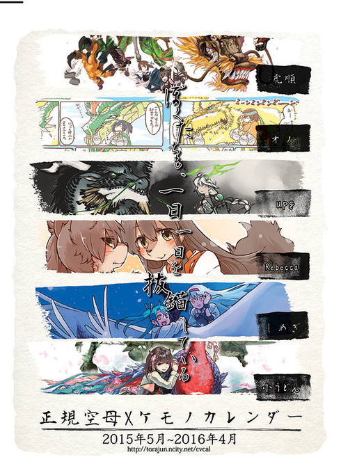 [宣伝]「ぼくらも一日一日を抜錨している」https://t.co/KAfR3VO5Yh 正規空母の起工、浸水、竣工、沈没、除籍日が書かれているA2サイズの正規空母Xケモノカレンダーです。よろしくお願いいたします!
