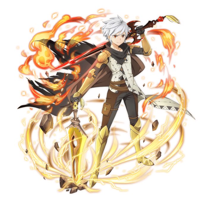 ねーねー これってもしや?あれなんじゃないすか? 火と雷?のダブル属性キャラ… あと二刀流かっこよすぎますww #シルさんどこ? #シルさん可愛い