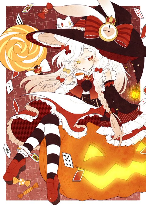ハロウィンも近づいてきたので去年したののが部活で提出日当日の深夜に描き終わらせた(?)ハロウィンっぽい絵を置いておきますね