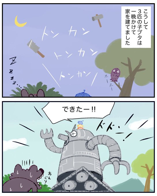 3匹の子ブタが合体してオオカミと戦う話④
