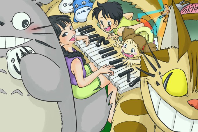 悩んでいると黒いやつら…そう ススワタリ(まっくろくろすけ)が鍵盤の上に次々に飛び乗って 黒い鍵盤に化けてくれました これならなんとかいけそうかな…! トトロも得意のオカリナを取り出して わくわく音楽会の幕が上がります