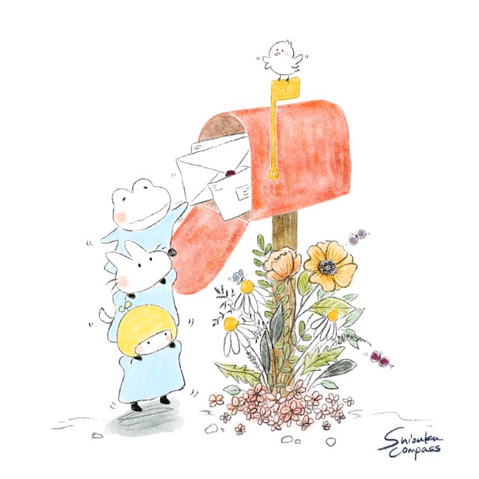 お手紙届いた! #procreate #illustration #illustrator #picturebook #picturebookwriter #characterdesign #author #practice #process #artshare #artwork #イラスト好きさんと繋がりたい #イラスト #お絵描き #絵本作家 #artistsontwitter #仲良し #friendship #絵本好き #花 #letter #手紙