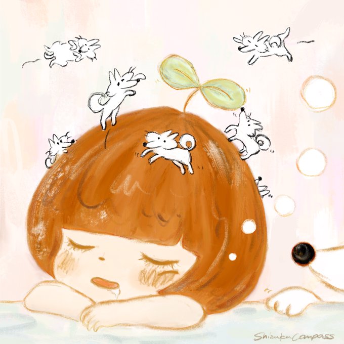 うたたね #procreate #illustration #illustrator #picturebook #picturebookwriter #characterdesign #author #practice #process #artshare #artwork #イラスト好きな人と繋がりたい #イラスト #お絵描き #絵本作家 #artistsontwitter #仲良し #friendship #絵本好き #花 #犬 #shiba #柴犬 #犬好き