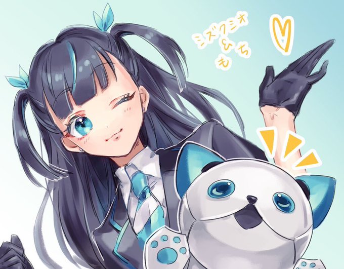 ファンアートをもらったよ〜! 可愛く描いてくれてうれしいな💙 もちもおっきく描いてもらえてよかったね! #Vtuber #雫澪 #シズクミオ
