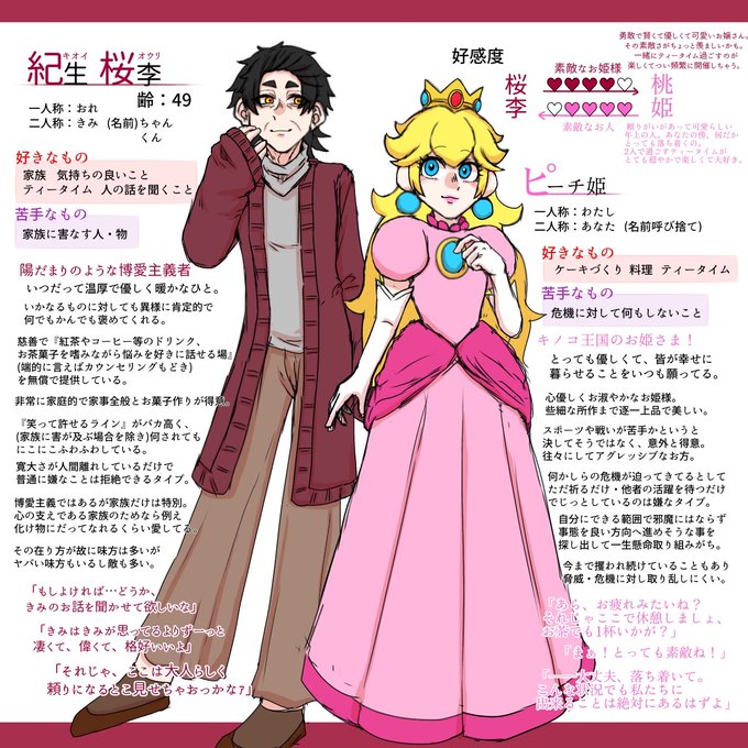凸凹おしどり紀生夫婦〜〜!!!渉と駆の両親です 縮尺違うので葵梨が小さく見えますが実際は葵梨の方が桜李より10cmぐらい背高いです