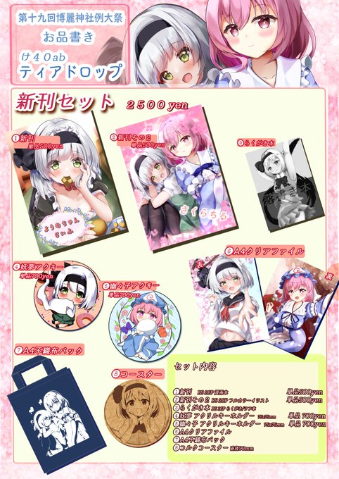 明後日におこなう 春例大祭(@tear_drops_4)のお品書きです。 Bootにもだしていますので… 是非是非お願いいたします。 #東方Project #例大祭19