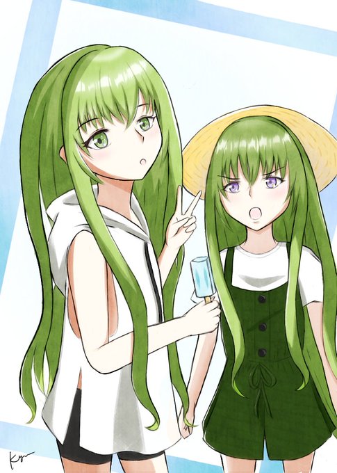 #夏が終わりそうだし今年描いた水着絵を貼ろう 便乗/再掲失礼します! 水着エルキドゥ(幻想)とねねちです!