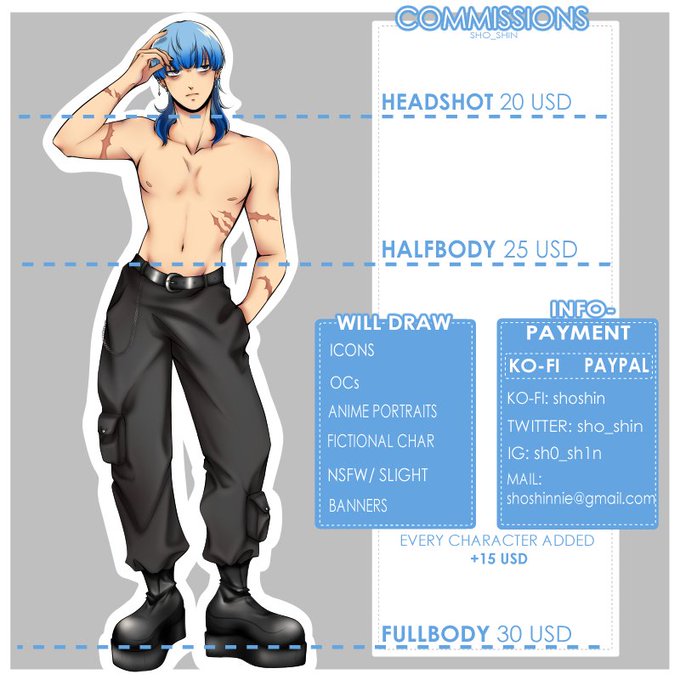 @chocolattinne Hi, I'm Sho💛 Here are some examples of my art! The prices are in dollars but I also accept payments in euro^^ A bust in euros would be 23€