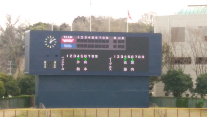 横須賀スタジアム 楽天対横須賀。 ベイスターズ先発は井納投手。 宇宙人頑張るルン!