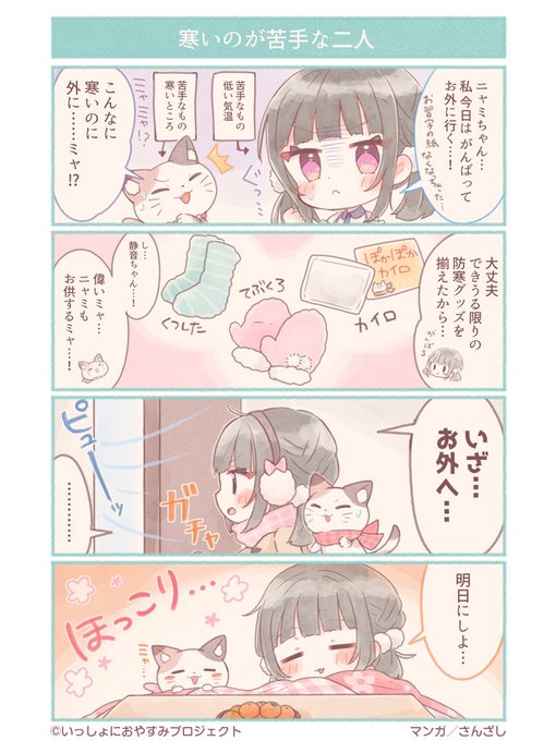寒さに弱い静音(CV:#日高里菜)とニャミ🐈。外に出ようと頑張るけれど…⁉️🧤🧦