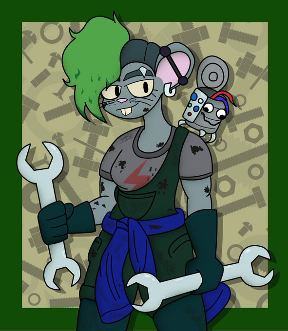 Another character I finally got around to drawing - Junkyard! She's an inventor who lives in a dump, and thus has an ample supply of material to tinker with. She also works with a gang trying to better their community, so she's always willing to help out.